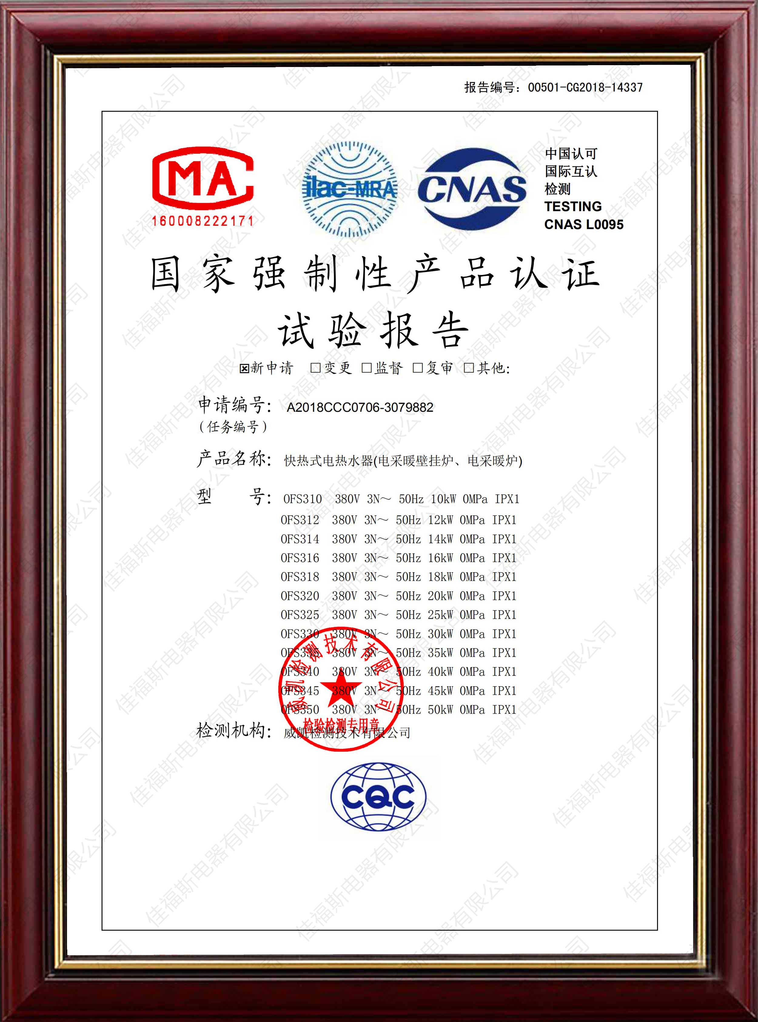 佛山市順德區佳福斯電器有限公司,坐落在家電之都 ——順德,是一家集科研、 新產品開發的大型家電生產基地, 專門從事研發、生產世 界一流的采暖設備、熱水設備等供暖供生活熱水的電器產品,成功開發了四大類一百多 個品種規格的產品, 廣泛應用于家庭、學校、機關、部隊、醫院、賓館、工廠宿舍等。 其產品安全、高效、方便、節能、環保,深受國內外廣大用戶的喜愛。 佳福斯以創新科技為目標,本公司投入巨資, 耗時多年,終于達到 了改寫電加熱技術的新篇章,它的安全性和耐用性是現在全世界同類 產品無可比擬的,佳福斯擁有大規模的生產工廠,專業生產電加熱的 核心部件加熱體, OEM貼牌以及品牌機, 它通過強制性認證, 結構獲得專利, 通過電加熱技術的改寫以及新思路,佳福斯將引 領供暖供熱水設備進入新潮流,為人類共享快樂,真正帶給人們溫暖。
